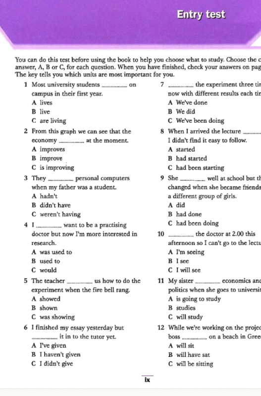 Cuốn sách còn có Entry Test ở đầu, giúp bạn xác định trình độ, chọn đúng unit cần tập trung. Đây là tính năng cực kỳ hữu ích nếu bạn tự học, giúp tiết kiệm thời gian và tránh lan man.