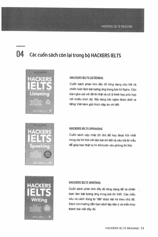 Nhiều bạn muốn tìm Hacker IELTS Reading PDF download free, Hacker IELTS Writing PDF hay Hacker IELTS Listening PDF + Audio trên mạng. Tuy nhiên, bạn cần lưu ý bản quyền: chỉ nên tải hoặc sử dụng từ các nguồn hợp pháp, website của nhà xuất bản hoặc các nền tảng giáo dục được cấp phép.