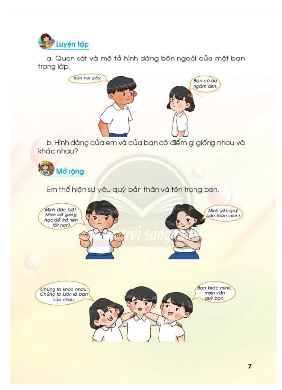 Sách sử dụng hình ảnh tươi sáng, bố cục rõ ràng, câu chữ ngắn gọn và trực quan. Nhờ vậy, học sinh nhanh chóng tiếp nhận bài học và không bị nhàm chán. Phụ huynh cũng dễ theo dõi tiến trình học tập của con.