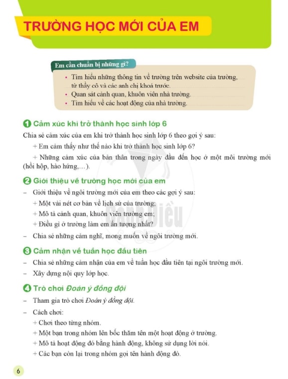 Sách Hoạt động trải nghiệm lớp 6 Cánh Diều được chia thành nhiều chủ đề, bao gồm: