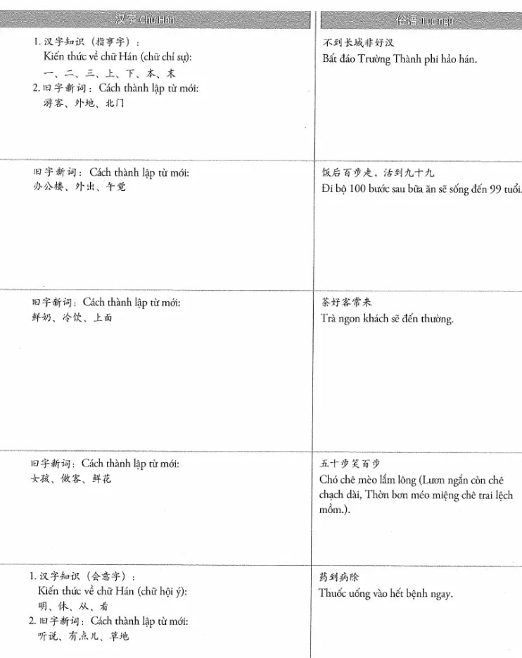 | 4 | Du lịch và phương tiện | Từ chỉ phương hướng “往”, “向” |