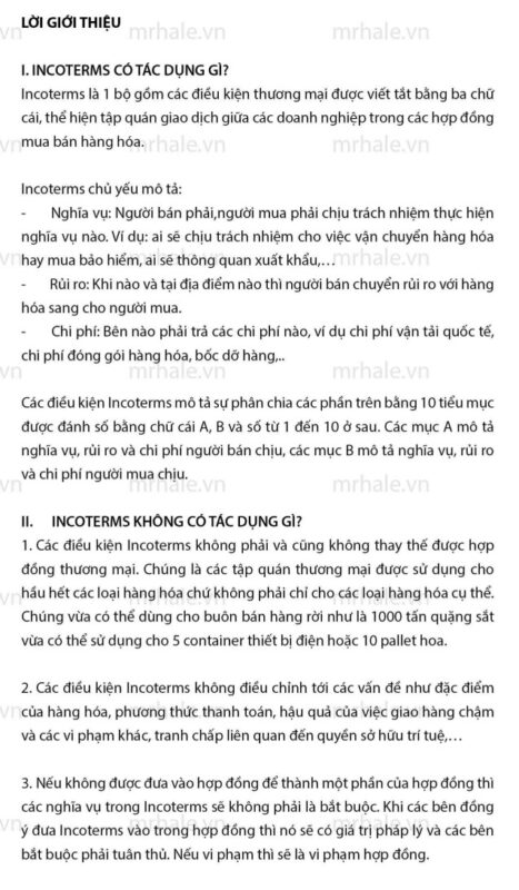 Phạm vi áp dụng và bản chất của Incoterms 2020