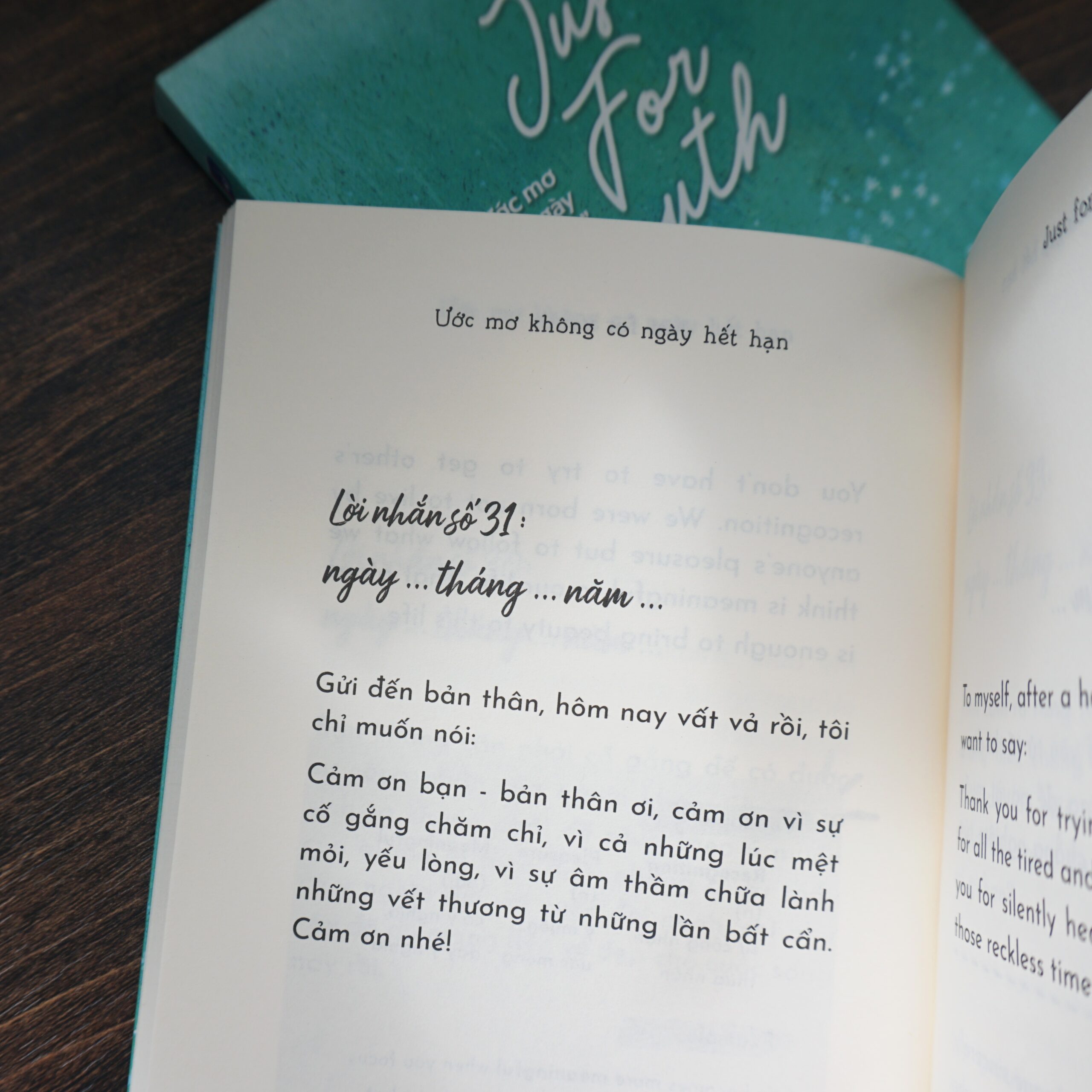 Just For Youth – Ước Mơ Không Có Ngày Hết Hạn không chỉ là một cuốn sách, mà là một người bạn đồng hành tinh thần cho tuổi trẻ. Tác phẩm chạm đến trái tim độc giả bằng ngôn từ tinh tế, gần gũi, xen lẫn tiếng Việt – Anh, giúp bạn dễ dàng thấm nhuần thông điệp của tác giả.