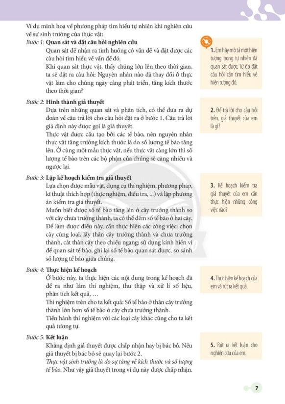 Ngoài việc cung cấp kiến thức, sách hướng dẫn học sinh cách học chủ động: quan sát, đặt câu hỏi, tìm lời giải, tự nghiên cứu tài liệu và hợp tác nhóm. Phương pháp này giúp học sinh phát triển tư duy logic, năng lực giải quyết vấn đề và kỹ năng tự học bền vững.