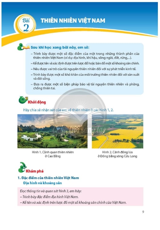 Địa lý Việt Nam và thế giới: Giúp các em hiểu vị trí địa lý, đặc điểm tự nhiên như sông ngòi, núi non, khí hậu và tài nguyên thiên nhiên.