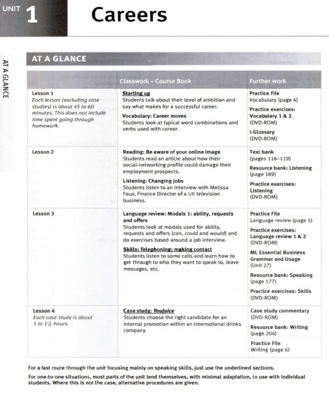 Mỗi bài trong Market Leader Pre-Intermediate 3rd Edition PDF gồm các phần: Starting up, Vocabulary, Reading, Listening, Language review, Skills, Case study.