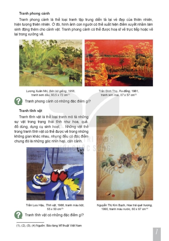 Một phần trọng tâm của sách là hướng dẫn học sinh thực hành vẽ tranh tĩnh vật, chân dung và phong cảnh. Bài tập được thiết kế từ cơ bản đến nâng cao, giúp học sinh phát triển kỹ năng quan sát, phối màu, bố cục và biểu đạt cảm xúc. Học sinh sẽ học cách tái hiện sự vật, con người, môi trường xung quanh một cách sống động và sáng tạo. Việc thực hành liên tục giúp tăng khả năng phối hợp tay – mắt, đồng thời rèn luyện tư duy thẩm mỹ và sáng tạo nghệ thuật.