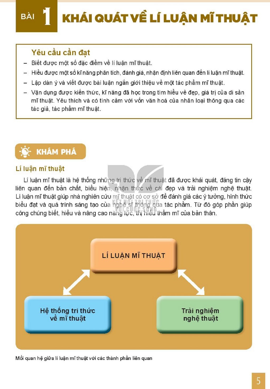 Vai trò mỹ thuật trong đời sống và giáo dục: học sinh được yêu cầu liên hệ tác phẩm với không gian sống, kiến trúc, hoặc thiết kế đồ họa, nhận ra ứng dụng thực tế của mỹ thuật.