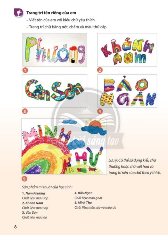 Sách cung cấp đầy đủ đáp án và gợi ý các phương pháp thực hành, giúp trẻ tự kiểm tra và học hỏi từ các lỗi sai. Điều này không chỉ nâng cao kỹ năng mĩ thuật mà còn phát triển tính tự lập, tự tin trong học tập.