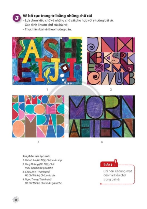 Các bài học có thể áp dụng để thiết kế poster, thi vẽ, trang trí lớp học hoặc bìa sách cá nhân.