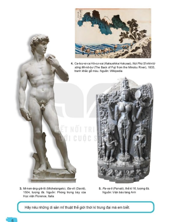 Đặc biệt, hình ảnh mang tính đối sánh giữa nghệ thuật trong nước và quốc tế giúp học sinh mở rộng góc nhìn, khám phá sự phong phú của mỹ thuật qua từng nền văn hóa khác nhau. Chính sự kết hợp này tạo nên một không gian học tập hấp dẫn, giảm áp lực học lý thuyết và tăng sự hứng thú tự nhiên.