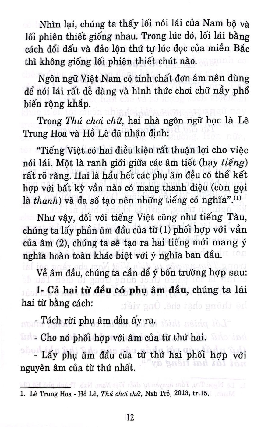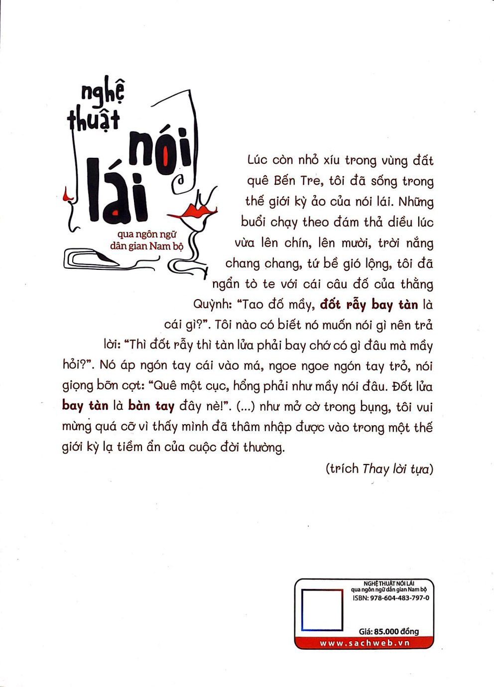 Ngay từ những trang đầu tiên, bạn sẽ cảm nhận sự gần gũi quen thuộc, như được sống lại những phút giây vui nhộn của các trò chơi ngôn ngữ, hay những lần bật cười sảng khoái khi nghe bạn bè bày ra những câu nói lái đầy bất ngờ. Cuốn sách không chỉ làm sống dậy một nét đặc trưng trong cách nói chuyện của người Nam Bộ, mà còn mở ra góc nhìn sâu sắc về trí tuệ dân gian, nơi sự dí dỏm trở thành bản sắc văn hóa.