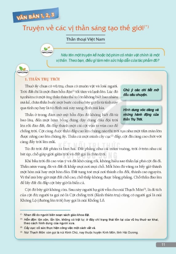 Phần khởi động giúp học sinh liên hệ kiến thức văn học với trải nghiệm cá nhân. Các hoạt động như kể chuyện, trao đổi ý tưởng, thảo luận nhóm nhỏ sẽ giúp học sinh: