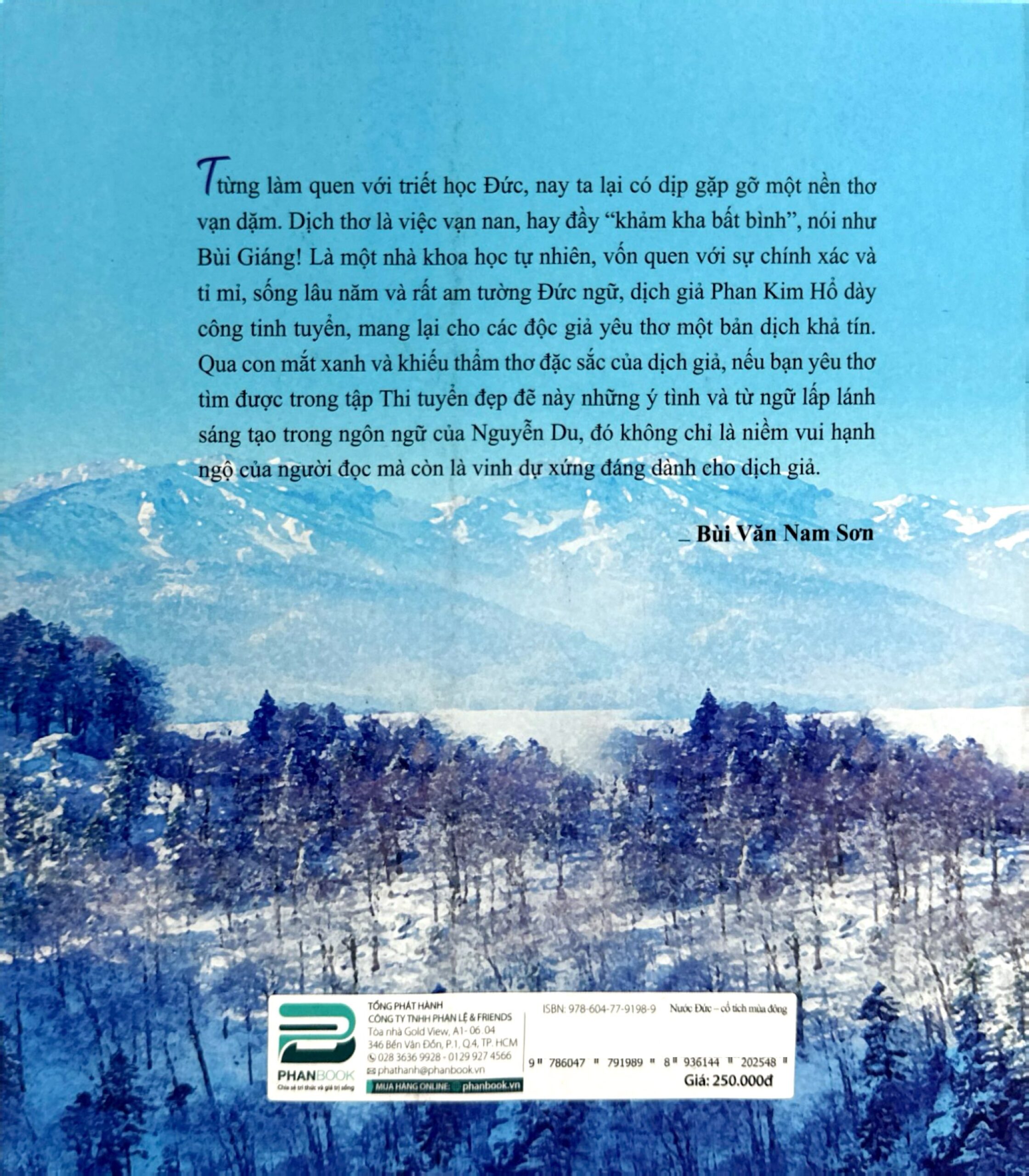 Điểm nổi bật của cuốn sách chính là tâm huyết của dịch giả Phan Kim Hổ. Ông đã khéo léo giữ lại hồn cốt, nhịp điệu và vẻ đẹp nguyên bản trong từng bản dịch, giúp người đọc cảm nhận được trọn vẹn sự tinh hoa của thơ ca Đức. Nhiều vần thơ còn gợi nhớ đến thi phẩm Việt Nam, tạo nên sự đồng điệu sâu sắc giữa hai nền văn hóa, mở ra một không gian thưởng thức văn học đầy ý nghĩa.