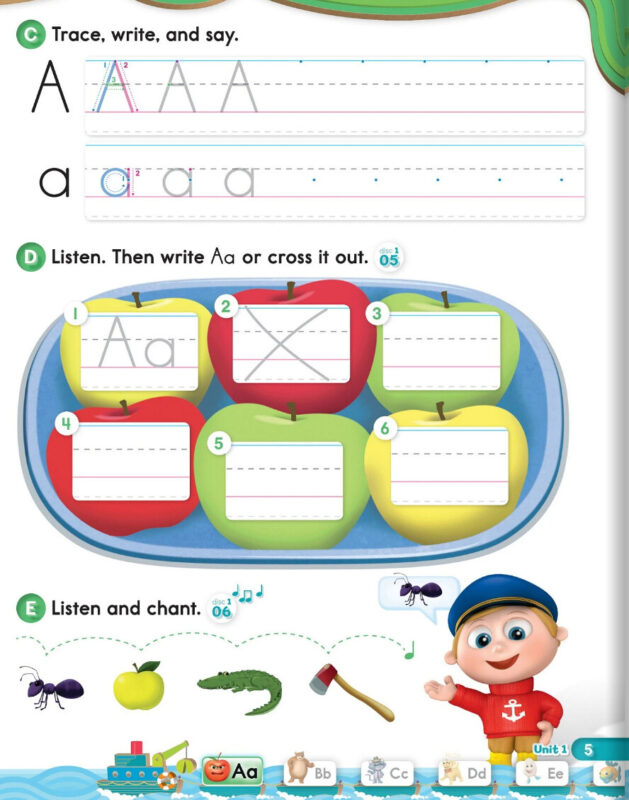 Không chỉ dừng lại ở sách chính, bộ tài liệu còn mở rộng với Oxford Phonics World 1 Audio và Writing English Oxford Phonics 1 PDF, mang đến môi trường học tiếng Anh đa chiều. Trẻ được nghe phát âm chuẩn từ người bản ngữ, luyện nói theo nhịp điệu bài hát và sau đó chuyển sang nhận diện chữ cái trong từ.