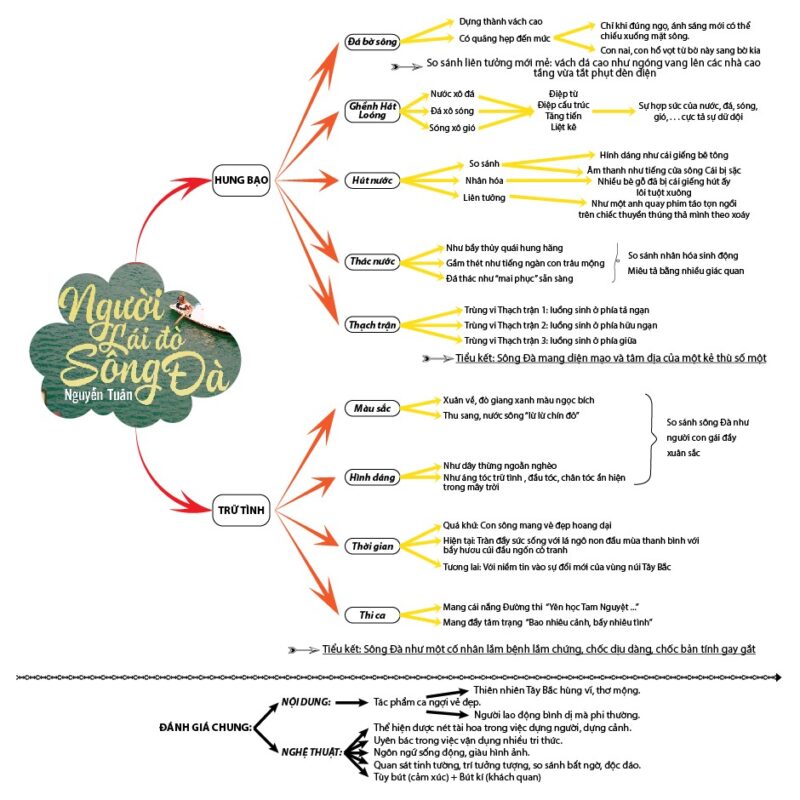 Những biện pháp nghệ thuật độc đáo của Nguyễn Tuân – nhân hoá, so sánh, liên tưởng phong phú, câu văn giàu nhạc điệu – đã khắc họa thành công cả thiên nhiên hùng vĩ lẫn con người phi thường. “Người lái đò sông Đà” không chỉ là một bức tranh thiên nhiên đẹp đến nghẹt thở, mà còn là bản anh hùng ca về con người lao động cần cù, dũng cảm và trí tuệ. Đọc tác phẩm, người đọc vừa cảm nhận được vẻ đẹp dữ dội, hùng vĩ mà trữ tình của sông Đà, vừa trân trọng và ngưỡng mộ những con người gan dạ, kiên cường nơi Tây Bắc, như thể được mời gọi lên đường khám phá và hòa mình vào thiên nhiên kỳ vĩ ấy.