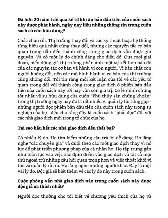 Nhờ phong cách viết mạch lạc, dễ hiểu, Phù Thủy Sàn Chứng Khoán trở thành cuốn sách nền tảng cho những ai muốn giao dịch cổ phiếu một cách chuyên nghiệp.