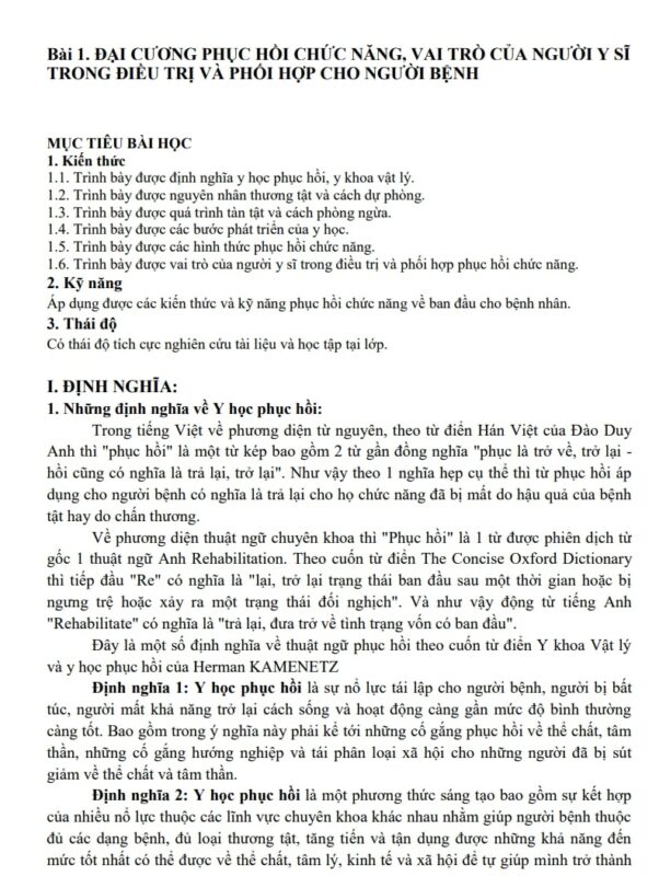 Giáo trình Phục hồi chức năng Y Hà Nội PDF không chỉ là tài liệu học tập bắt buộc trong chương trình đào tạo bác sĩ mà còn là nguồn kiến thức chuẩn mực được Bộ Y tế khuyến nghị sử dụng trên toàn quốc. Với cấu trúc khoa học, cách trình bày rõ ràng và tính ứng dụng thực tế cao, bộ giáo trình này giúp sinh viên, bác sĩ và kỹ thuật viên phục hồi chức năng có thể vừa học vừa hành, hiểu sâu và áp dụng hiệu quả trong công việc lâm sàng.