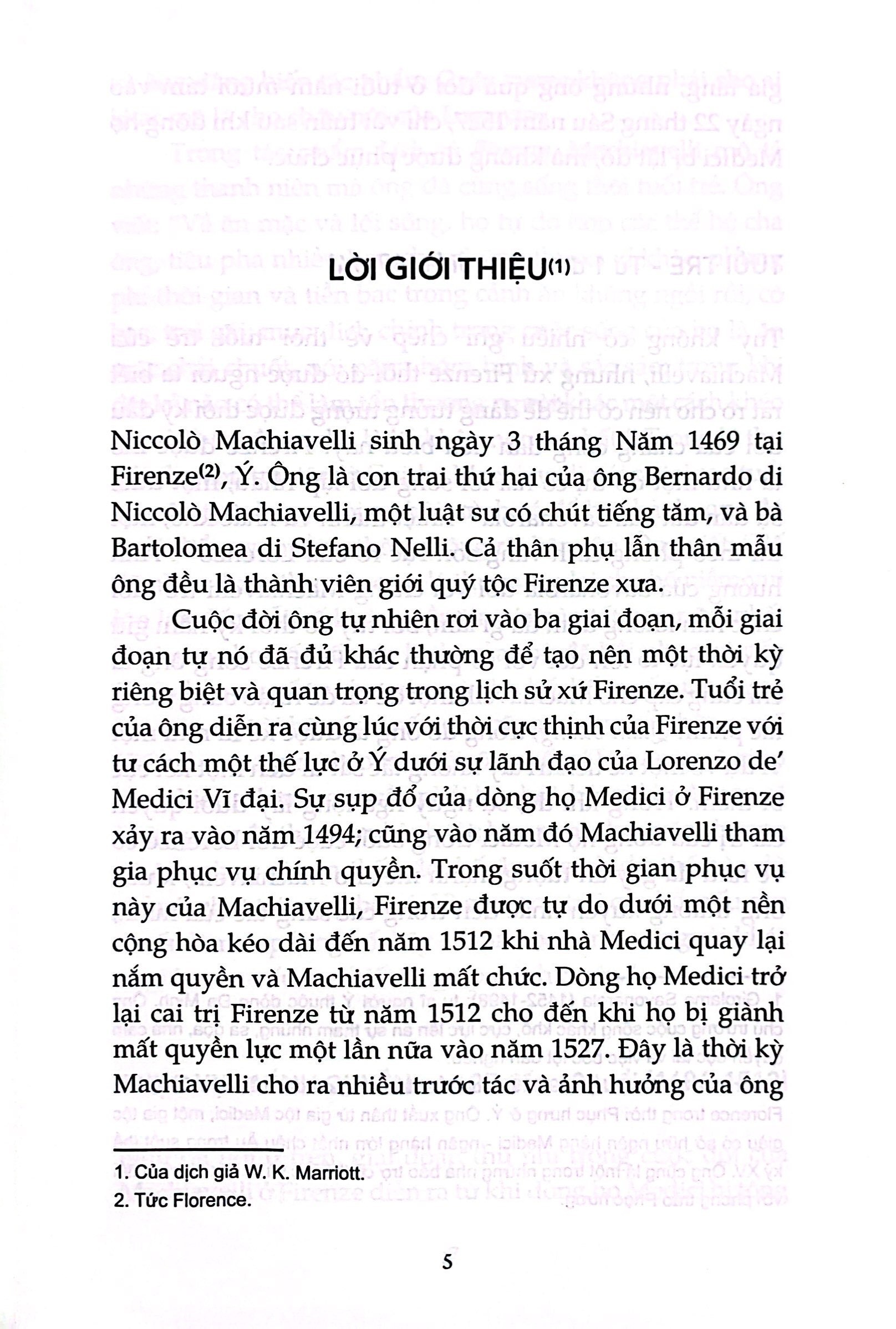 Quân Vương của Niccolò Machiavelli là tác phẩm kinh điển hàng đầu trong lĩnh vực chính trị học, mang đến những góc nhìn táo bạo và vượt thời gian về quyền lực cũng như nghệ thuật cai trị. Không chỉ dành riêng cho các bậc quân vương hay nhà lãnh đạo, cuốn sách này còn chứa đựng nhiều bài học quý giá mà bất kỳ ai cũng có thể áp dụng vào đời sống. Khi đọc Quân Vương, bạn sẽ khám phá cách Machiavelli phân tích thấu đáo những chiến lược giữ vững quyền lực, nghệ thuật ứng xử tinh tế và cả những quyết định cứng rắn mà một nhà lãnh đạo buộc phải thực hiện.