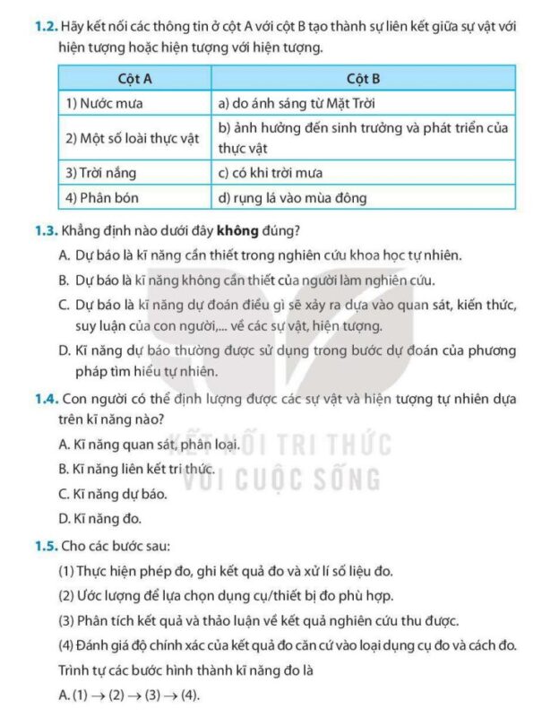 Một trong những yếu tố quan trọng làm nên chất lượng của sách bt khtn 7 kết nối tri thức chính là hệ thống bài tập phong phú. Các dạng bài được thiết kế từ trắc nghiệm, tự luận ngắn, bài tập thí nghiệm đến câu hỏi mở yêu cầu giải thích hiện tượng. Nhờ sự đa dạng này, học sinh có cơ hội luyện tập toàn diện nhiều kỹ năng khác nhau thay vì chỉ ghi nhớ lý thuyết.