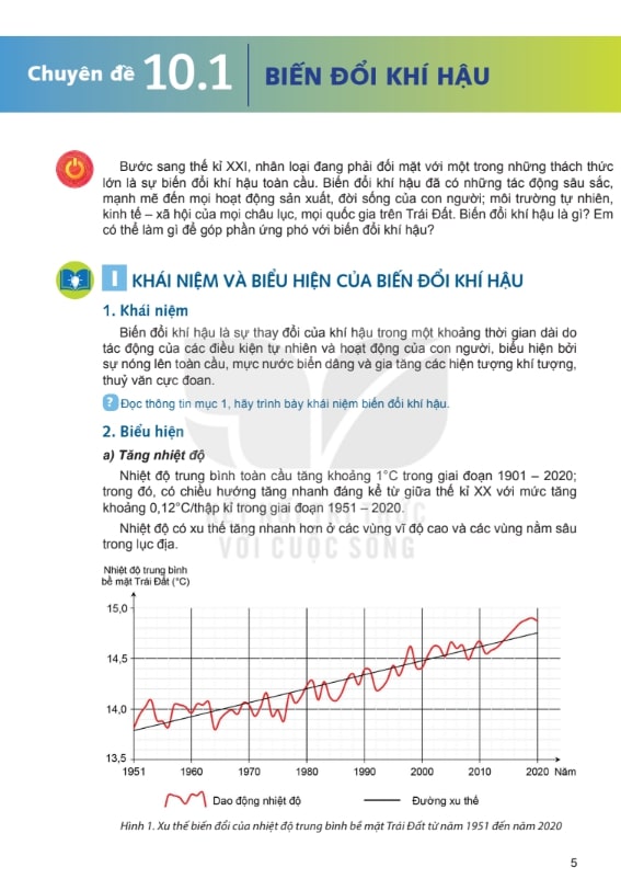 Một nội dung quan trọng trong sách là bảo vệ môi trường, sử dụng bền vững tài nguyên thiên nhiên. Sách cung cấp các tình huống thực tế, giúp học sinh hiểu rõ tầm quan trọng của việc bảo vệ môi trường, thích ứng với biến đổi khí hậu và phát triển kinh tế bền vững.
