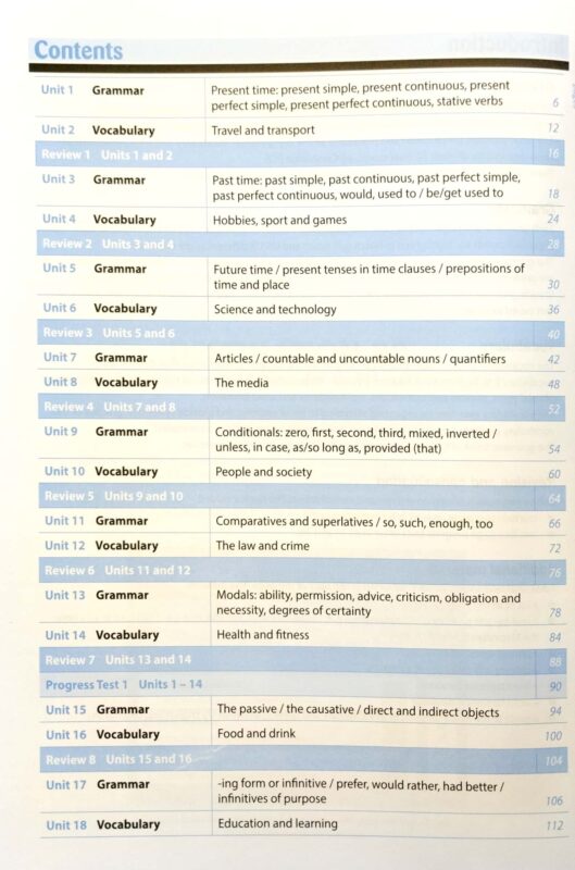 Cuốn sách tập trung vào việc trang bị ngữ pháp cốt lõi và từ vựng theo chủ đề dành cho người học đang chuẩn bị cho các kỳ thi chứng chỉ tiếng Anh quốc tế ở các cấp độ B1, B2, C1, C2. Với 28 Unit, sách được chia theo lộ trình khoa học: cứ một Unit về ngữ pháp sẽ song hành cùng một Unit về từ vựng, giúp người học vừa hiểu lý thuyết, vừa trau dồi vốn từ để vận dụng ngay vào thực tế.