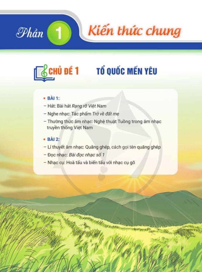 Khác với các cấp học trước, sách Âm nhạc 12 Cánh Diều không chỉ giúp học sinh hát, nghe và cảm thụ mà còn hướng đến việc hiểu sâu sắc về giá trị nghệ thuật, lịch sử và văn hóa của âm nhạc. Nội dung chương trình được chia thành các mảng chính: