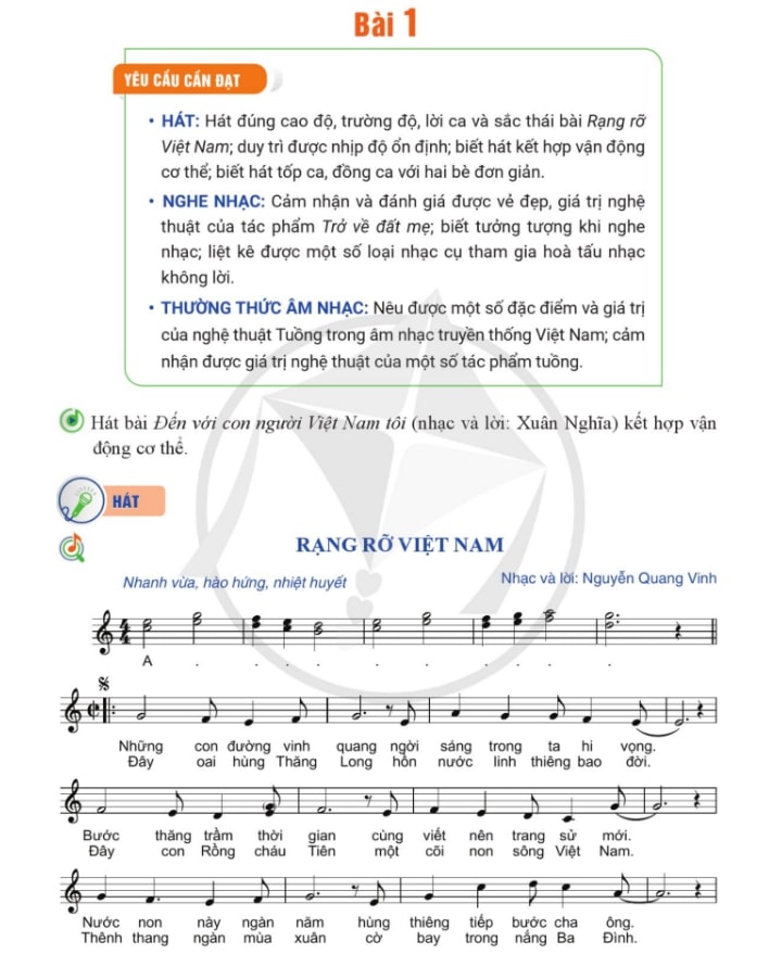 Thực hành ca hát: Cung cấp các bài hát Việt Nam và quốc tế đặc sắc, phù hợp lứa tuổi, giúp học sinh rèn luyện kỹ năng thanh nhạc và biểu diễn.