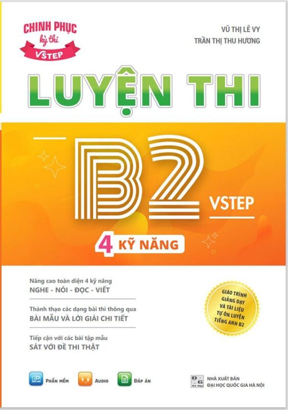 Sách Luyện Thi B2 VSTEP 4 Kỹ Năng là tài liệu không thể thiếu dành cho những ai đang chuẩn bị chinh phục chứng chỉ tiếng Anh B2 VSTEP theo khung năng lực ngoại ngữ 6 bậc của Việt Nam. Cuốn sách được biên soạn khoa học, bám sát cấu trúc đề thi thật với đầy đủ 4 kỹ năng: Nghe – Nói – Đọc – Viết, giúp người học rèn luyện toàn diện và nâng cao năng lực tiếng Anh một cách hiệu quả.