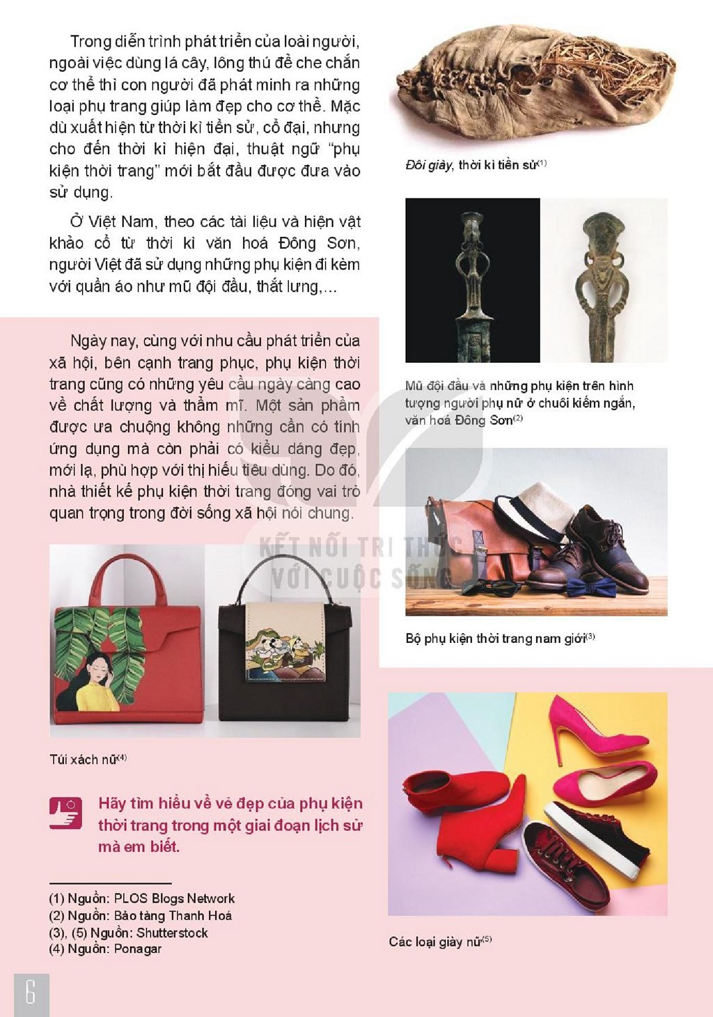 Học sinh trong quá trình học sẽ được tìm hiểu cách chọn phụ kiện phù hợp với trang phục, đồng thời nhận biết các yếu tố như chất liệu, màu sắc, kiểu dáng, kết cấu và công năng sử dụng.