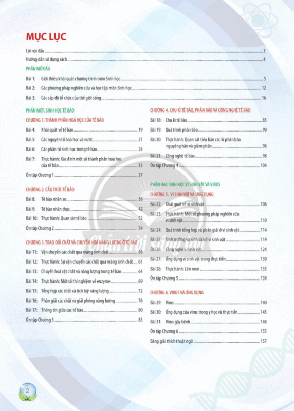Cuốn sách được thiết kế với 6 chủ đề lớn, mỗi chủ đề lại bao gồm nhiều bài học nhỏ có nội dung rõ ràng, gắn liền với các vấn đề sinh học thực tiễn.