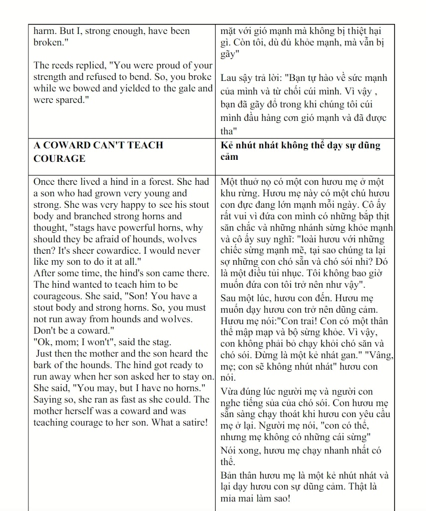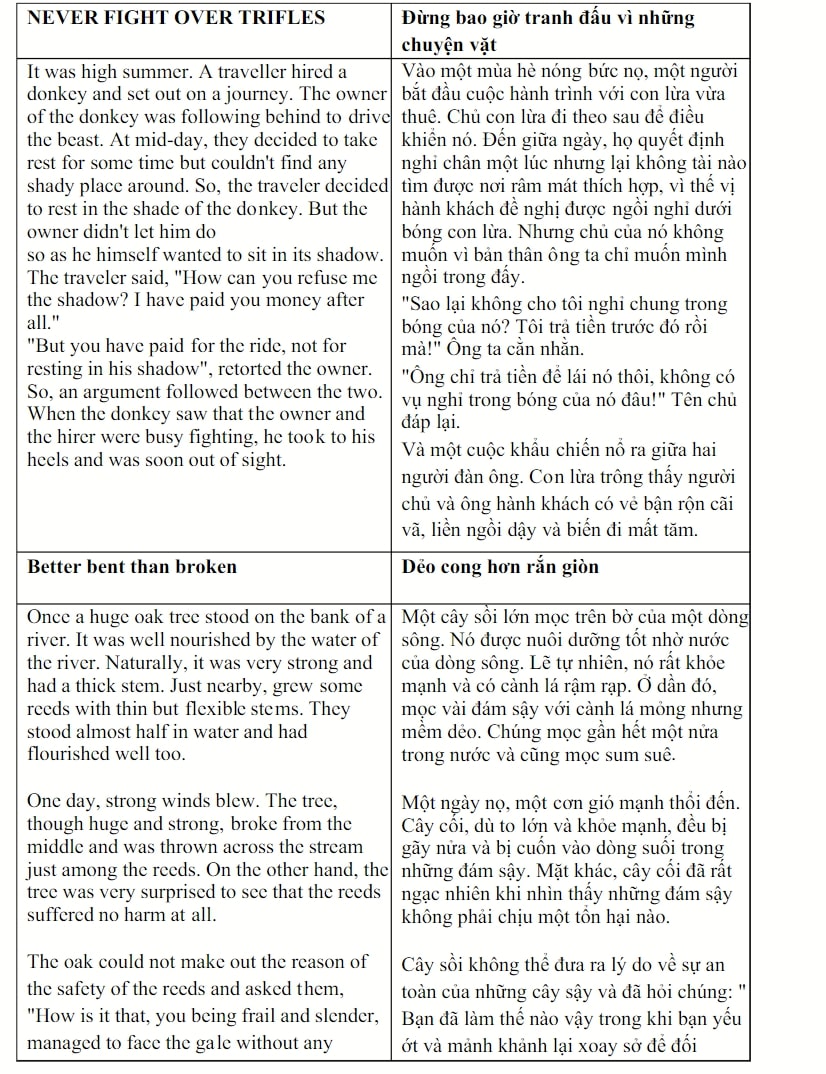 Mỗi câu chuyện là một hành trình cảm xúc: có câu chuyện về tình bạn, về gia đình, hay những mẩu chuyện ngắn gọn mà sâu sắc. Đọc truyện song ngữ không chỉ giúp bạn hiểu ngôn ngữ mà còn cảm nhận văn hóa – cách người Anh, người Mỹ thể hiện cảm xúc, cách họ kể chuyện, miêu tả và triết lý.