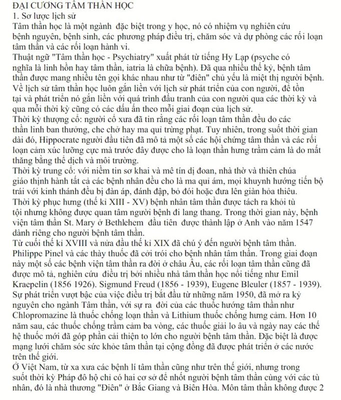 Đại cương về tâm thần học và lịch sử phát triển chuyên ngành