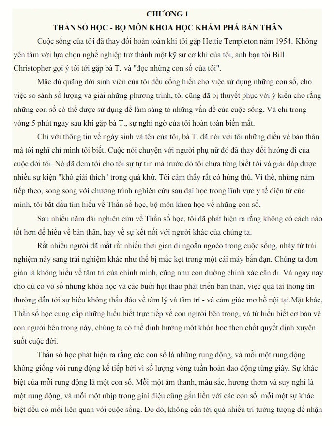 Đúng như tên gọi, Thần số học – Sức mạnh của những con số PDF tập trung vào việc thức tỉnh nhận thức của người đọc. Mỗi chương là một hành trình giúp bạn nhận ra “con số không chỉ là ký hiệu toán học, mà là năng lượng sống”.
