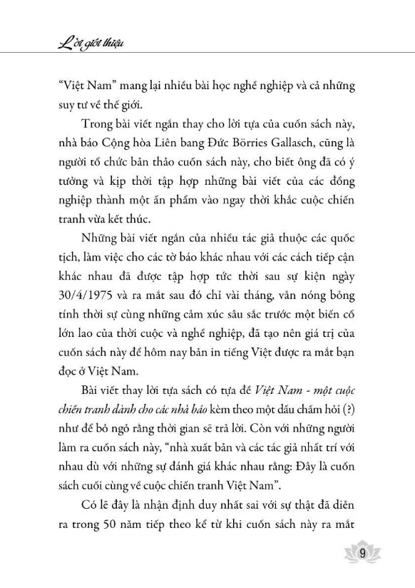 Börries Gallasch là nhà báo và biên tập viên người Đức. Ông đã tập hợp và biên soạn lại những bài viết của nhiều phóng viên Đức trực tiếp tác nghiệp tại miền Nam Việt Nam giai đoạn 1975. Nhờ góc nhìn khách quan từ bên ngoài nhưng lại giàu trải nghiệm thực tế, ông mang đến một bức tranh sống động, đa chiều và trung thực về ngày kết thúc chiến tranh. Các phóng sự trong sách vừa mang tính tư liệu, vừa gợi nhiều xúc cảm, giúp người đọc – dù là người Việt hay độc giả quốc tế – đều cảm nhận được giá trị lịch sử to lớn của thời khắc ấy.