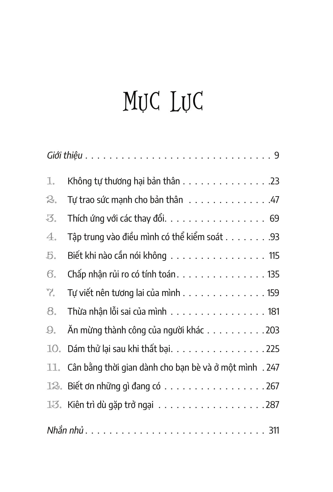 13 Điều Cho Con Vững Vàng là cuốn sách nuôi dạy con được hàng triệu cha mẹ trên thế giới yêu thích, giúp trẻ xây dựng nội lực, tự tin và kiên cường trước mọi thử thách. Thay vì ép con phải “hoàn hảo”, tác giả hướng cha mẹ đến việc nuôi dưỡng tinh thần mạnh mẽ, khả năng phục hồi sau thất bại và thói quen tư duy tích cực. Mỗi chương là một “bài học cảm xúc” thiết thực, giúp trẻ hiểu rằng vững vàng không phải là không gục ngã, mà là biết đứng lên sau mỗi lần vấp ngã.