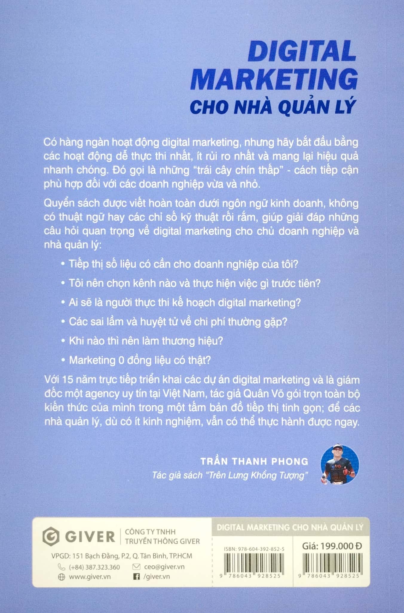 Điểm đặc biệt của cuốn sách này là tác giả không chỉ chia sẻ lý thuyết, mà còn mang đến những trải nghiệm thực tế suốt 15 năm làm digital marketing – từ thất bại cay đắng đến thành công rực rỡ. Những câu chuyện thật, bài học thật sẽ giúp người đọc dễ dàng hình dung và áp dụng ngay vào doanh nghiệp của mình.