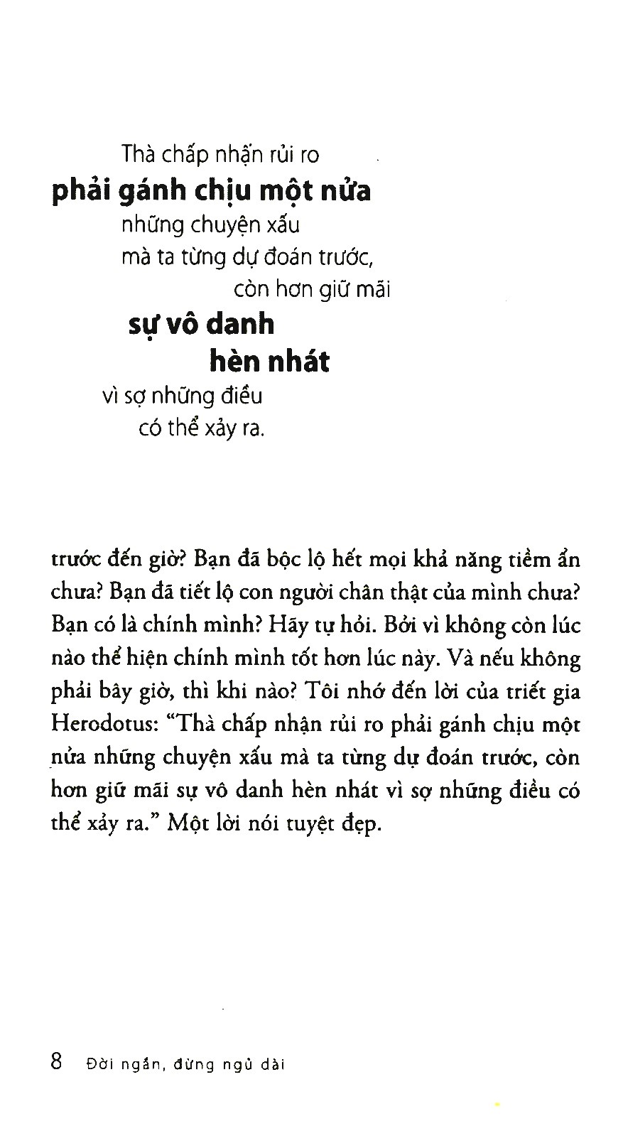 Đời Ngắn Đừng Ngủ Dài là cuốn sách truyền cảm hứng nổi tiếng của Robin Sharma, tác giả của Vị Tu Sĩ Bán Chiếc Ferrari. Tác phẩm là lời nhắc nhở nhẹ nhàng nhưng sâu sắc rằng cuộc đời mỗi người chỉ có một lần – và thời gian trôi đi sẽ không bao giờ trở lại. Thay vì để những ngày tháng quý giá trôi qua trong sự trì hoãn, mệt mỏi hay vô định, cuốn sách thôi thúc bạn thức tỉnh, hành động và sống trọn từng khoảnh khắc.