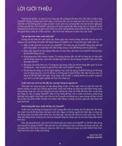 Kiếm tiền cùng ChatGPT – Vào nghề Viết và sáng tạo nội dung: hướng dẫn hơn 110 kỹ thuật thực hành từ cơ bản đến nâng cao, giúp người đọc nắm vững các phương pháp tối ưu hóa từ khóa, cấu trúc văn bản và sử dụng ChatGPT trong các bối cảnh khác nhau như viết nội dung quảng cáo, văn bản học thuật và tối ưu SEO. Cuốn sách minh họa trực quan với 190 video và 300 hình ảnh minh họa, cung cấp bài tập thực hành, ví dụ thực tế giúp bạn đọc có thể ứng dụng ngay.