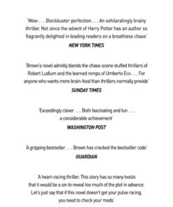 Dan Brown’s writing style deserves recognition for its ability to transform complex concepts into an accessible, fast-paced adventure. Short chapters create a rhythm that pulls the reader forward, while cliffhangers ensure there is no easy place to stop. Each twist deepens the intrigue, urging us to rethink established narratives and uncover layers of meaning that lie beneath familiar stories. It is this combination of intellectual challenge and adrenaline-fueled pace that has made the novel not only a commercial success but also a cultural phenomenon.
