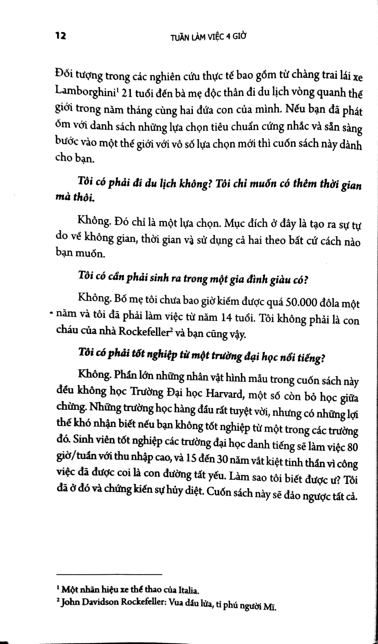 Nếu bạn đang tìm kiếm sự tự do, muốn bứt phá khỏi lối sống 8 giờ nhàm chán, thì đây chính là tấm bản đồ dẫn lối. Bởi đôi khi, chỉ cần thay đổi cách nghĩ, bạn có thể biến “tuần làm việc 4 giờ” thành “cuộc đời tự do vô hạn.”