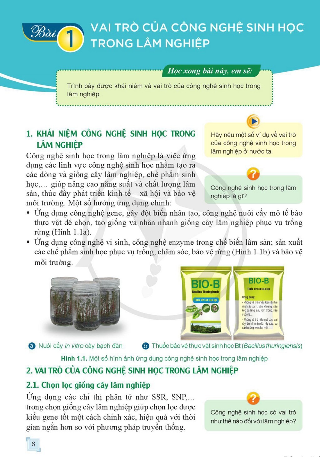Phần lâm nghiệp của SGK Công Nghệ 12 giúp học sinh hiểu vai trò sống còn của rừng đối với khí hậu, môi trường và đời sống con người. Sách trình bày khoa học về: