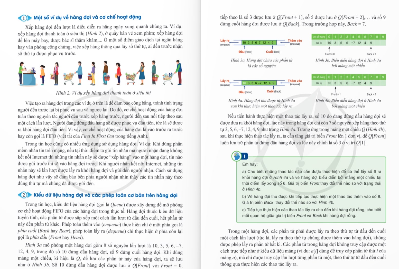 Danh sách, ngăn xếp (stack), hàng đợi (queue) và cách ứng dụng vào bài toán thực tế.