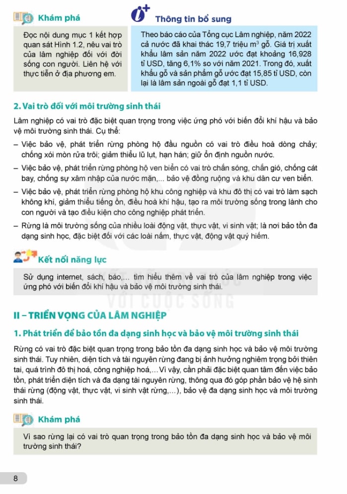 Thông qua kiến thức trong sách, học sinh hiểu được giá trị của tài nguyên rừng và nguồn lợi thủy sản, từ đó nâng cao ý thức bảo tồn, phát triển kinh tế gắn liền với bảo vệ môi trường.