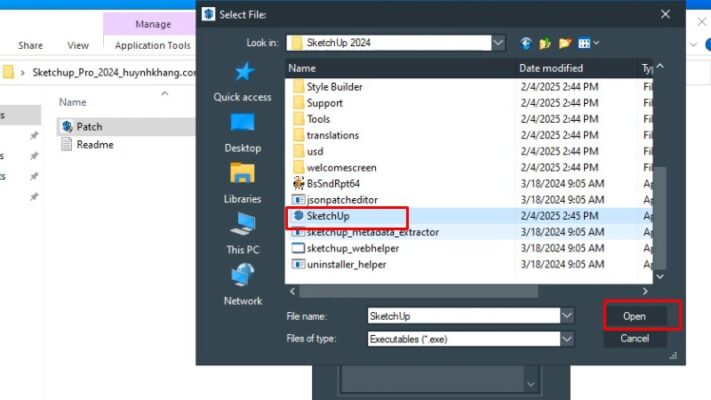 Bước 8: Vào thư mục Sketchup 2024 chọn file như hình và bấm Open