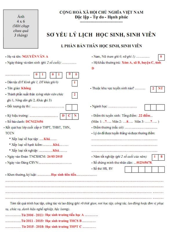 Chèn ảnh chân dung nghiêm túc: Ảnh 3×4 hoặc 4×6, ăn mặc lịch sự.