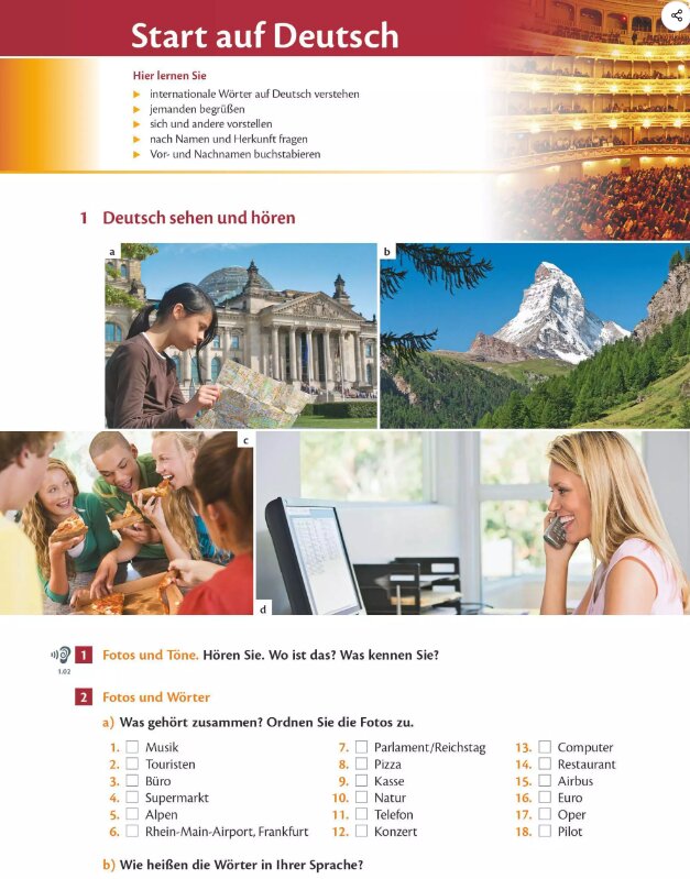 Khả năng nghe luôn là thử thách lớn đối với người mới bắt đầu học tiếng Đức, vì ngôn ngữ này có cách phát âm và ngữ điệu đặc trưng. Studio 21 A1 audio được xây dựng song song với từng bài học trong sách, bao gồm hội thoại, đoạn độc thoại ngắn và bài tập nghe điền thông tin. Nội dung audio phản ánh sát các tình huống giao tiếp đời thường như đặt lịch hẹn, hỏi đường, mua sắm hay trao đổi thông tin cá nhân.