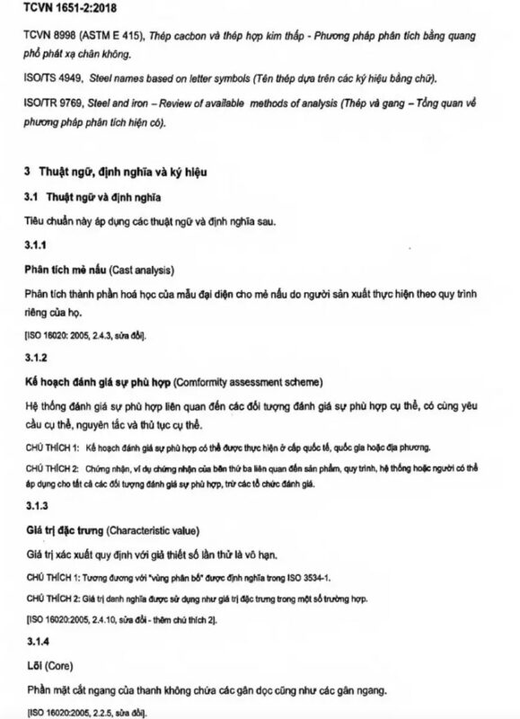 TCVN 1651-2:2018 PDF là tiêu chuẩn quốc gia quy định về thép cốt bê tông dạng thanh tròn trơn và gân – một phần quan trọng trong ngành xây dựng hiện nay. Tài liệu này cung cấp đầy đủ thông số kỹ thuật, yêu cầu về cơ lý, phương pháp thử nghiệm và quy cách ghi nhãn nhằm đảm bảo chất lượng, an toàn cho các công trình dân dụng và công nghiệp.