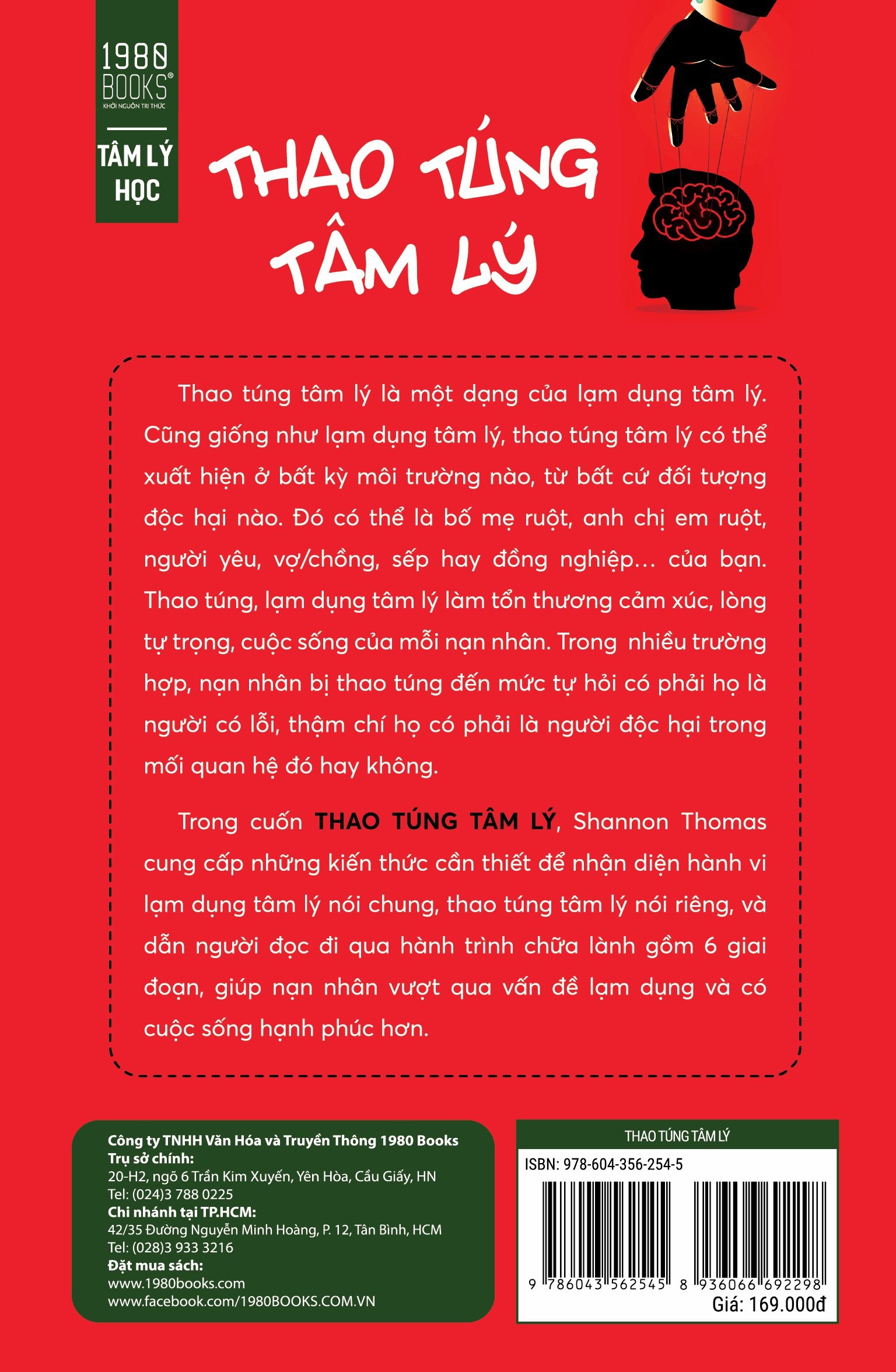 Thao Túng Tâm Lý của Shannon Thomas là cuốn sách thiết yếu giúp độc giả nhận diện và hiểu sâu về những hình thức thao túng tâm lý và lạm dụng tinh vi, thường xảy ra âm thầm nhưng để lại hậu quả nghiêm trọng. Thao túng tâm lý là một dạng lạm dụng tinh thần có thể xuất hiện trong mọi môi trường, từ gia đình, mối quan hệ tình cảm, đến nơi làm việc. Nạn nhân của những hành vi này thường trải qua tổn thương về cảm xúc, tự trọng và chất lượng cuộc sống.