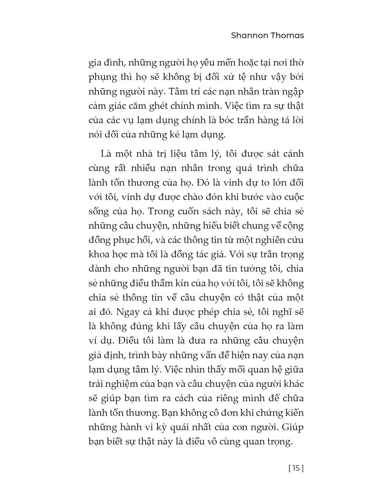 Với kiến thức chuyên sâu và cách tiếp cận thực tế, Shannon Thomas hướng dẫn độc giả từng bước vượt qua tổn thương tâm lý, từ đó xây dựng một cuộc sống ý nghĩa và lành mạnh hơn.